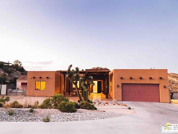 Stunning Santa Fe-Style Home in Western Hills Estates. This custom-built 3-bedroom, 2-bath home sits on over an acre of land, surrounded by the iconic boulders of Western Hills Estates. Located just two minutes from downtown Yucca Valley and close to all the High Desert's attractions, this property offers both convenience and serenity. Inside, you'll find 10' high ceilings and an open-concept layout that seamlessly connects the kitchen and living room, creating a bright, airy space. The master suite features a cozy fireplace and en-suite bath, adding a touch of warmth and romance. Step outside to a backyard perfect for entertaining, complete with a built-in BBQ and outdoor fireplace, ideal for starry nights with friends or quiet evenings under the desert sky. The spacious side yard, with its dramatic boulders, offers endless possibilities for leisure spaces or a future pool. Don't miss this unique desert retreat schedule your tour today!