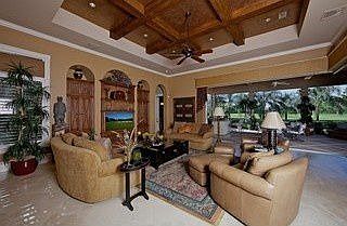 Sitting on a serene lot with a golf course view, this estate offers 4 spacious bedrooms plus a den with 4 full bathrooms and 1 half bath. Spread over 5,700 square feet, this home is a masterpiece. There have been numerous upgrades, including granite counter-tops, upgraded appliances, impressive cabinetry, light and bathroom fixtures, extensive crown molding, wood and faux ceiling details, a lutron lighting system, and much more. Also included is remarkable marble flooring throughout the main li