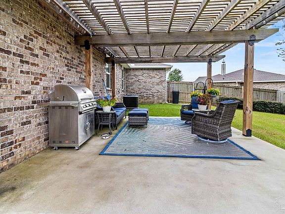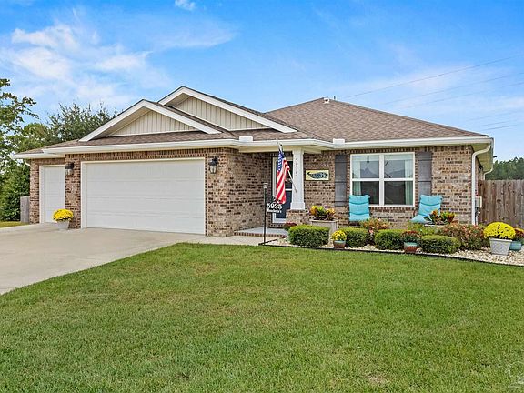 Tucked away on a quiet cul-de-sac, this 4 bed, 2 bath home rests on a 0.37-acre lot with no neighbors behind, offering both privacy and space. Step inside to find LVP flooring throughout the main living areas, tile in the bathrooms, and carpet in two bedrooms for added comfort. A 3-car garage with a mini split provides versatile space for storage, projects, or a workshop. The backyard is designed for relaxing evenings and gatherings, featuring a covered patio, a 15x20 pergola, and a 10x12 shed, all within a fully fenced yard accented by landscaping and gutters already in place. Enjoy comfort and convenience with the new Walmart Pace Market just 3 minutes away, Whiting Field only 19 minutes, and NAS Pensacola just 43 minutes from your door.