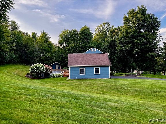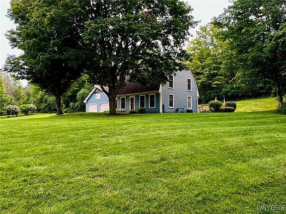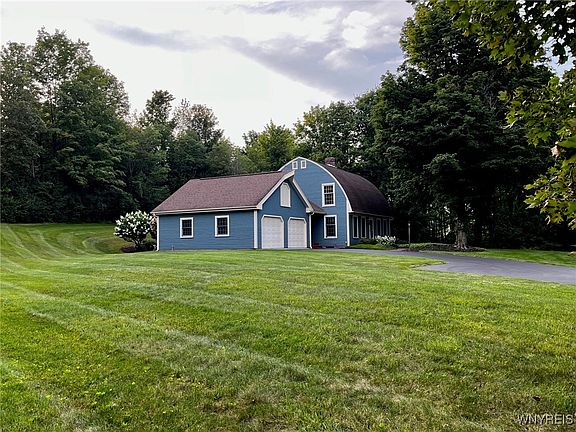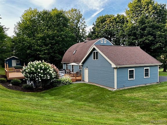 Unique custom built 2150 sf three bedroom, one and a half bath home in highly sought after Camillus area and West Genesee School District. Beautiful two acre property nestled in a wooded country setting. When walking in breezeway entrance your eyes are immediately drawn to dark wood beam ceilings, open kitchen/dinning floor plan with large island and granite countertops Hardwood floors throughout lower level and upstairs hallway. New LVT wood plank flooring in primary bedroom. New Carrier natural gas furnace and central air in 2020. Convenient central vacuum system. Large 26 x 27 two car garage, 34 x 28 attic and 15 x 20 detached storage shed. Bonus room above garage with access from primary bedroom. Spacious 800 sf rear deck surrounds an 18 x 32 pool. Home is set back 150’ off Newport Road on an elevation. One mile from Village of Camillus with close and easy access to local highways. Sqft is owner measured interior first and second floor living space. #BR & #BA.