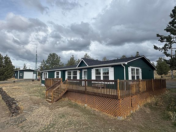 Extremely peaceful & private country setting offering stunning sunsets just minutes from Prineville! Discover the perfect blend of comfort, privacy, and practicality in this well-maintained home sitting on 10 fully fenced, low-maintenance acres. Fresh interior & exterior paint along with a brand-new roof means all the hard work is done—just move in & enjoy! Step inside to find vaulted ceilings, hardwood floors, all appliances included, & a spacious kitchen w/ample storage and island seating—ideal for entertaining or everyday living. Large windows frame the beautiful views, while the wraparound deck invites you to relax & soak in the serene, tree-studded surroundings. Bring your hobbies & projects—this property features multiple outbuildings, including a great versatile shop w/concrete floors, & detached garage. Enjoy peace, privacy, & room to roam. The included 5-acre parcel to the West is a separate tax lot & is buildable, perfect for family compounds or a bonus investment property.