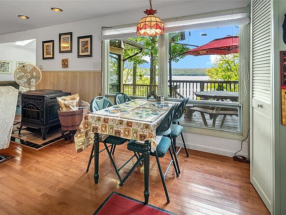 Welcome to your dream lake cottage! Just in time for summer! This cozy, contemporary 3-bed, 2-bath home offers a lake refuge in an unbeatable setting with 80 feet of pristine Seneca Lake frontage, perfect for summer fun in the sun. Renovated in 2013, it features an expanded primary en suite, featuring a private sitting porch and an extended wrap-around deck; perfect for enjoying the breathtaking west-facing views and stunning sunsets that this property offers. With 2 private docks, boat lifts, and a boathouse, it's a water lover's paradise with plenty of space for entertaining family and friends. Brand new certified 3 bedroom septic! Nestled in the heart of the Seneca Lake Wine Trail, this location is unbeatable for its proximity to all of the area’s attractions. Experience the best of Finger Lakes living ~ where dreams come home! Public Open House Saturday May 25 from 1-3pm