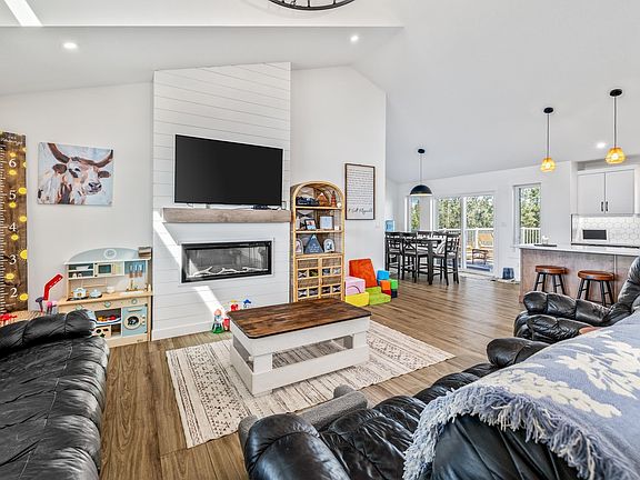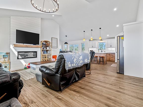 Soaring vaulted ceilingsAbundance of natural lightModern farmhouse charmOpen-concept layoutBeautiful countertopsCozy fireplaceBright kitchen