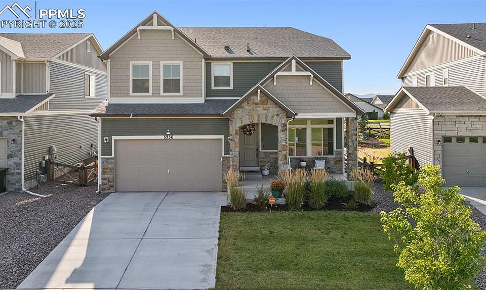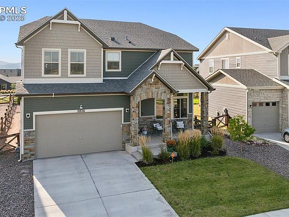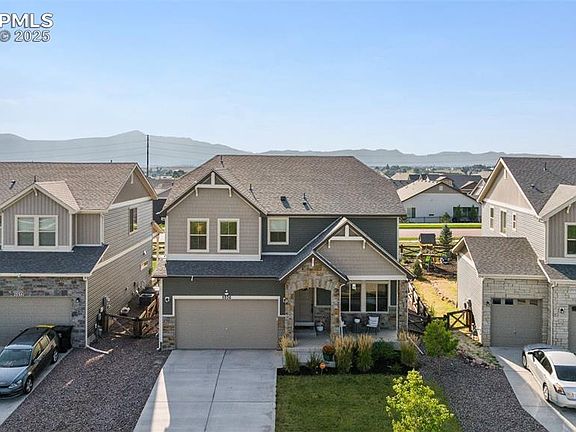 Welcome to your better-than-new dream home in the highly sought-after Banning Lewis Ranch community! Step inside to find a bright and inviting living room anchored by a cozy fireplace, perfect for family movie nights or relaxing evenings by the fire. The gourmet kitchen is the heart of the home, featuring a oversized marble kitchen island, a spacious walk-in pantry, and plenty of room to create memories around everything from weeknight dinners to holiday feasts. Working from home is effortless in the stylish main-level office, complete with modern French doors and natural light that make the space both inspiring and functional. Upstairs, you’ll find a versatile loft along with three spacious bedrooms, a full bathroom, and a convenient laundry room with its own sink. Making laundry days both easy and efficient. The master suite is a private retreat, offering sweeping mountain views, a spa-like bathroom with soaking tub, walk-in shower, and a massive walk-in closet. The finished basement is designed for both fun and function, with a wet bar and plenty of open space for entertaining. Tucked under the stairs, you’ll even find a magical reading nook, a cozy hideaway perfect for kids. An unfinished section provides excellent storage now, with the option to expand and add another bedroom and bathroom in the future. Step outside to enjoy a covered back porch overlooking the backyard. Ideal for summer barbecues, morning coffee, or watching the kids play. With 4 bedrooms, 2.5 bathrooms, and thoughtful upgrades throughout, this home blends comfort, elegance, and functionality, all just a short walk from a neighborhood park and open space. Living in Banning Lewis Ranch means so much more than just owning a home. Residents enjoy resort-style amenities including a club house, gym, multiple swimming pools, neighborhood parks, playgrounds, sports courts, walking and biking trails, and community events. This home isn’t just a place to live, it’s a lifestyle. Come fall in love.