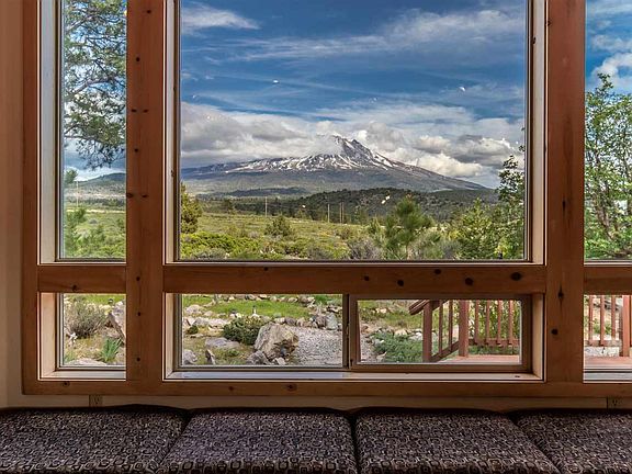 Gorgeous VIEW home on 10 ACRES, close to town! This 2500SF home was designed by Chris Schnieder with spectacular panoramic views of Mt Shasta and the Eddys in mind. Home has high vaulted ceilings, skylights, hickory wood flooring & tons of storage! A generous gourmet kitchen with new stainless refrigerator & induction range, Bosch dishwasher, tiled floors & birch cabinets. The entertainment-sized island flows into the living area, where oversized windows provide an abundance of natural light and breathtaking Mt Shasta views. Keep toasty warm w/ two wood stoves (Blaze King), Mini-Split Heat + AC, whole house fan & even a generator! Loft area has 1/2 bath, carpeted floors & extra storage or play area. Primary ensuite has new hickory wood floors, a wood-stove, sliders leading to the deck, double sinks & gorgeous tiled shower. Expansive low maintenance landscapes and mountain views from your redwood deck and covered patio. Your storage and hobby-dreams have been answered with a huge 24x36 ft metal 3-car garage/shop w 240VT plus a separate art studio! Fruit tree orchard (apple, pear, plum, peach) and expansive vegetable gardens, greenhouse & sheds & more! Also ~ extreme Stargazing...