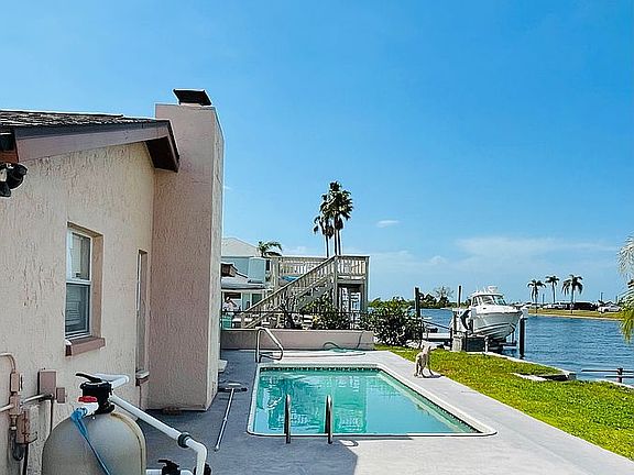 Deep water canal with floating dock. Seconds to the Gulf of Mexico / America. Beautiful sunsets from your backyard. Pool, fireplace. Newer roof, AC and pool pump. Please text for quickest response. Flooded home ready for updating. List price represents lot value. This is a premium lot on a deep water canal with large boat access.