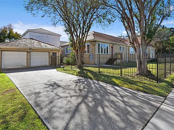 Beautifully refurbished raised all brick home of corner lot with terra cotta roof, detached 2 car garage minutes from UNO lakefront campus. This distinctive features an open floorplan with new all wood floors throughout, Liv-rm dr combo, vaulted clgs, galley kitchen with granite ctrs, new gas cooktop with vent, adj large den, lrg private primary be with adjoining jacuzzi bath suite. Freshly painted interior. Must see! X Flood zone.