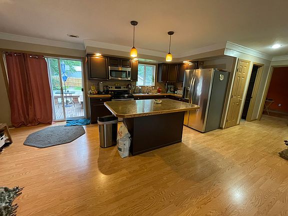 Welcome to this spacious 3,880 sq. ft. abode boasting a seamless blend of modern design and functionality! Step into the heart of the home where an expansive open-concept kitchen, living, and dining area awaits, perfect for hosting gatherings or simply enjoying everyday life. With 6 bedrooms and 2 full bathrooms on the main floor, there's plenty of space for family and guests alike. Unwind in the luxurious master suite featuring a charming bay window, ample shelving, a generous walk-in closet, and a spa-like bathroom complete with a walk-in shower, soaker tub, and sleek concrete countertop vanity. Venture downstairs to discover a captivating basement retreat! A sizable family room beckons, equipped with built-in shelves to showcase your extensive library or media collection, alongside a convenient built-in bar for entertaining guests with ease. This home has been thoughtfully updated by the current owner, with recent improvements including the removal of propane wall heaters, installation of a new wood-burning stove, and the addition of fiber-optic internet for enhanced connectivity. Outside, the backyard has been fenced in for added privacy, and a brand-new water system has been installed, featuring a water softener and iron/calcium honeycomb filtration system for quality water throughout. Situated across the street from the picturesque West Twin Lake, this property offers both serenity and convenience. Additionally, the bedrooms are set to receive a fresh neutral palette, with paint and supplies already procured to seamlessly transform the space to your liking. Don't miss the opportunity to make this impressive residence your own - schedule a showing today and experience all it has to offer!