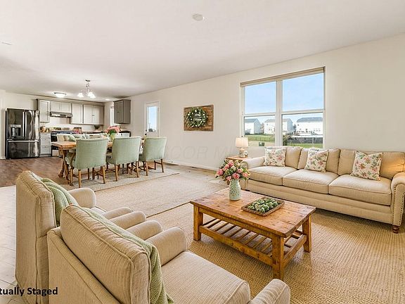 Welcome Home to this spacious 4 bedroom, 2.5 bath that offers an ideal blend of comfort and functionality. The first-floor features spacious entry area for welcoming guest, a dedicated den for an at home office space, a bright great room and the generous kitchen has ample cabinets, counter space, area to add an island . The eating area perfect for everyday living and entertaining family and friends. The second floor includes a versatile loft for second living area, second floor laundry with a bump out to add additional shelving. The spacious primary suite offers two walk-in closets and a private en-suite bath. The three additional spacious bedrooms each offering ample closet space. A full basement has excellent potential for additional living space and storage. The large backyard serves as a blank canvas to create your own outdoor retreat. With its flexible layout and room to grow, this home is designed to fit your lifestyle. Easy access to neighborhood pond, park, green space, Hoover Reservoir, Downtown New Albany, Uptown Westerville, Easton, Airport and More!
