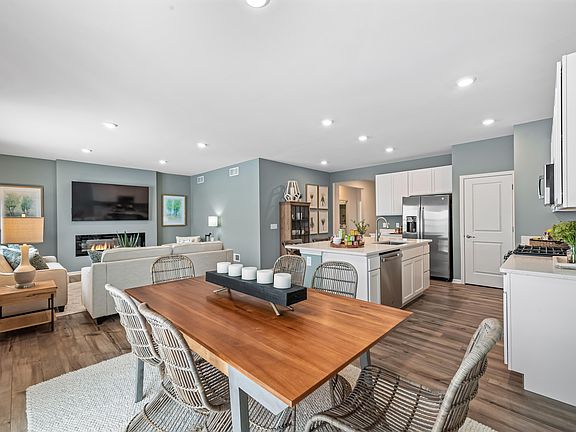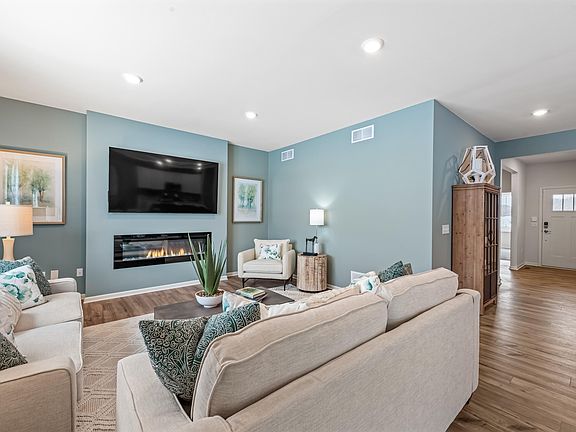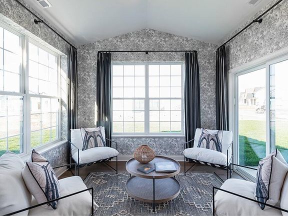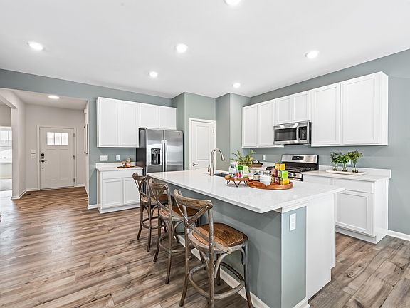 The Rutherford is an impressive 3-bedroom, 2-bathroom ranch-style home designed for low-maintenance living. Featuring a stylish brick exterior, this stunning residence seamlessly blends aesthetics with functionality, offering a comfortable and convenient lifestyle. As you step inside, you'll be welcomed by a spacious, open-concept interior filled with natural light. The heart of the home is the well-appointed kitchen, which includes 42-inch white cabinets and quartz countertops. The primary bedroom serves as a serene retreat, complete with an ensuite bathroom featuring a deluxe shower upgrade. Two additional bedrooms complete the layout. The home is equipped with the latest smart home technology, including a Ring Video Doorbell Pro, a Honeywell thermostat, and a Schlage Wi-Fi smart lock. Located in the esteemed Crown Point school district, Aylesworth is a new community offering resort-style amenities such as a community pool, splash pad, firepit, and a soon-to-be scenic walking trail. Enjoy the convenience of lawn care and snow removal included in the monthly HOA fee. Please note that stock photos are used and actual homes may vary.