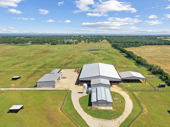 Turn-key horse operation at its absolute finest. Situated on a sprawling 163 acre parcel of land, this property offers ample space and countless opportunities for your horses and farm production. Multiple pastures, fully fenced & crossfenced. 12-stall barn with automatic waterers, fans, fly-spray system, and matted stalls. Enclosed feed room & separate tack room. Covered breezeway from the barn to arena. 120x225 covered arena, with flag system & removable panels. Covered area with 6-horse Trojan walker. 8-traps with 20x12 horse sheds with water to all pens & separate alleyways. Main house has 3 bedrooms 2.5 bathrooms. Open concept. Covered patios wrap around. From pasture to pasture, every location is properly maintained and ready to be used immediately. Approximately 163 acres fenced for horses or cattle. Overall, this property is a true gem, offering unparalleled space, beauty, & horse amenities. All the necessary tools and farm equipment needed to operate the ranch will convey. It is sure to impress and offers all the space and amenities you need to succeed.