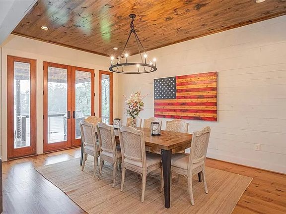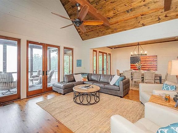 This stunning Lake Martin waterfront home blends craftsmanship and comfort in an elegant lakefront retreat. With 4 bedrooms, 3 baths, and it offers open living spaces with vaulted wood ceilings, a stone fireplace, and large windows showcasing lake views. The kitchen features polished concrete countertops, custom cabinetry, and a spacious island ideal for gatherings. The primary suite provides privacy and a spalike shower enclosure. Outdoor living includes a covered porch, firepit area, terraced stone landscaping, and a double boat dock with lifts. Located in the Shady Bay community near Wind Creek State Park and Alexander City, this home captures the essence of lakeside living with style, tranquility, and thoughtful design. This property is currently operating as a successful short-term rental, generating annual booking revenue. With established marketing, repeat guests, and strong occupancy, it provides immediate income potential.