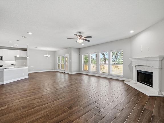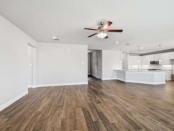 Inside, the layout is open and easy to live in. The kitchen has granite countertops, clean lines, and plenty of room for family or friends to gather. Porcelain wood-look tile ties everything together, giving the space a warm look that’s built to last.