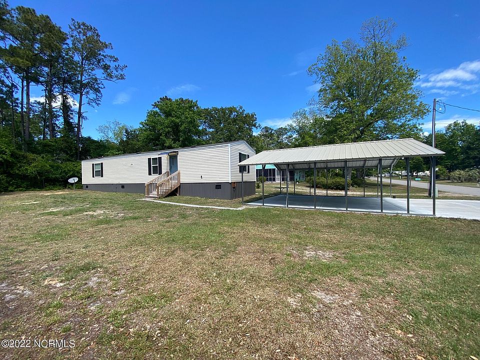 Ya'll this one is a cutie and is move in ready. He was built and brought to this beautiful homesite in 2020. With the Intracoastal Waterway within site, he'll make you want to hook that boat right up to the trailer, grab your fishing rods and head down for the weekend. Or better yet make him your everyday staycation with the sands of Oak Island only 15 minutes away. If you prefer Holden Beach - guess what? That's less than 30 minutes away. Southport, Shallotte, Leland, Downtown Wilmington, and Myrtle Beach are all within a short distance. His pristine condition makes him move in ready. The openness of the living, dining and kitchen are spacious yet warm and cozy. The two bedrooms are a comfortable size. Park your vehicles under cover with the large carport over the concrete driveway. Make your way to Sunset Harbor and call me when you get there.
