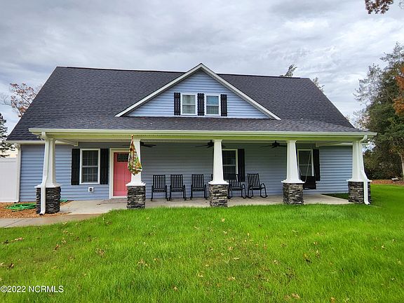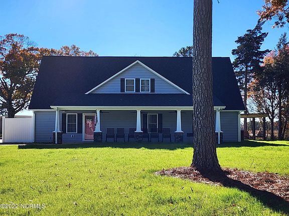 Beautiful newly built home with water view of the Albemarle Sound. This home features 5 bedrooms and three and 1/2 bathrooms. Vaulted ceilings in main open concept living area with lots of cabinets in the kitchen for the chef in the family. The kitchen also has gorgeous granite countertops. This home has an awesome covered front porch. There is a heated/cooled sunroom which provides extra living area. There are Jack n Jill bathrooms on first and second floors, plus a second living area on the second floor. There are plenty of storage areas within home. This property also has two outside buildings that will hold all of your water sports supplies and any gardening tools that you may require. One building has a finished interior great for entertaining, workshop or office. The swings around the fire pit are sure to be a great place to relax. Water access is between 431 and 469 Breezy Banks Rd. This home is offered at $465,000.