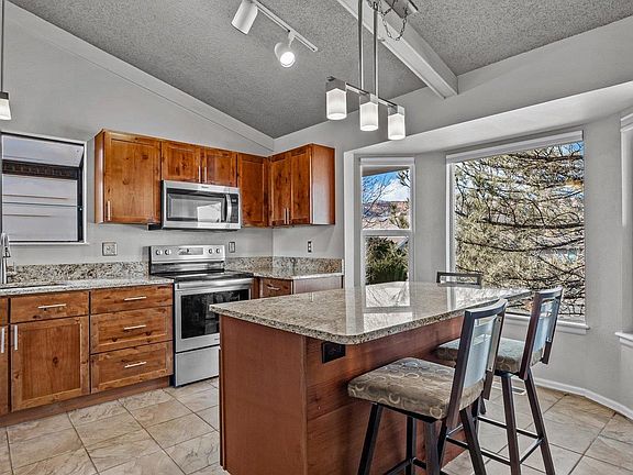 This Redlands home is located in a quiet cul-de-sac, offering stunning monument views from the front yard and picturesque Grand Mesa views from the back deck. The kitchen, remodeled in 2020, features new cabinetry, granite countertops, stainless steel appliances, and a convenient kitchen island. Additional upgrades include new carpet throughout Feb 2025, a new water heater installed in 2024, exterior paint completed in 2023, dual-pane windows, composite siding, and weather-resistant front and back decks and stairs. The furnace was replaced in 2017. The oversized garage, measuring 800 square feet, provides ample space for a small workshop or plenty of extra storage.