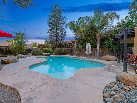 The Showpiece of Morningside Estates! Welcome to 594 Diana Ct, a stunning semi-custom home where resort living meets everyday convenience. This 4-bedroom, 3-bath property offers over 2,400 sq. ft. of thoughtfully designed space, combining luxury, comfort, and function. Step inside to a grand great room with a wall of glass and an oversized slider, blending indoor and outdoor living spaces. The gourmet kitchen boasts double ovens, a gas cooktop, bar seating for six, and dining for 8-10, ideal for entertaining. The primary suite is a true retreat with a garden soaking tub, dual-head shower, custom walk-in closet, and private slider to a morning patio or moonlit swim. A French-door flex room is perfect as a home office, gym, or reading lounge. This home is equipped with modern upgrades, including 49 solar panels, a newer HVAC system, a whole-house fan, a smart thermostat, a Ring doorbell, an ADT camera system, app-controlled sprinklers, and an insulated garage featuring custom cabinetry and a workbench. The backyard is your private resort, enjoy the pool yard with pergola, deck, grape arbor, towering redwoods, queen palms, for a shaded afternoon retreat. The main yard features mature trees, a 10×10 pad for BBQs, and an expansive covered patio, nearly the length of the house. Additional spaces include an RV & kennel yard with secure gates and a shop yard with two sheds for storage and projects. Located in a quiet, no-HOA cul-de-sac with top-rated Pioneer Elementary and Sierra Pacific High nearby, this home offers a welcoming community vibe with wide streets, a local dog park, and easy access to shopping, dining, Amtrak, HWY 43 & 198, and Fresno Yosemite Airport. Day trips to the coast, mountains, or wine country are just a drive away.