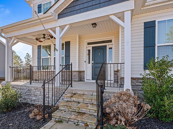 This stunning 3 bedroom, 2.5 bathroom home offers style, comfort, and convenience. A long driveway leads to a charming covered porch and a spacious two-story layout. Inside, you'll find a versatile study with a Murphy bed (a seller's gift to you), a formal dining room, and a large kitchen with granite countertops and stainless steel appliances. The family room features a cozy fireplace, while the primary suite boasts dual vanities and a walk-in closet. Additional highlights include a covered patio, a bonus room, and a double side-entry garage. This home shows better than new construction without the added costs. Thoughtfully maintained and truly move-in ready, it includes upgrades you won't find in most new builds: custom blinds, a refrigerator and a storage shed saving you thousands right from the start. Located in a peaceful, gated community with a clubhouse, pool, and playground, this home offers country living with space and serenity just 50 minutes south of Raleigh. It's an unbeatable option for buyers looking to escape the city and it's ideally positioned for military families stationed at Fort Bragg.