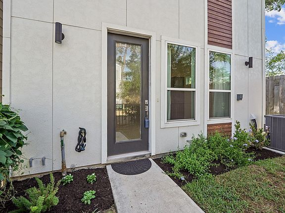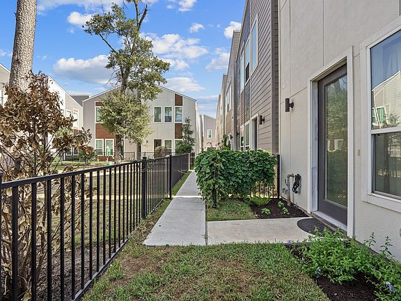 Stunning home in gated community situated on a corner lot within minutes of the 610 Loop, Downtown and popular shopping & dining destinations. Features include an open floor plan with high ceilings, recessed lights, hardwood and tiles floors throughout. Spacious living room with tile floors & windows overlooking the front yard has staircase with wood treads, access to half bath and flows seamlessly to kitchen. Gourmet kitchen with island/breakfast bar & pendant lighting touts soft-close 42" wood cabinetry surrounded by quartz counters, subway tiled back splash with lighting, apron sink, S/S appliances including a 4-burner gas range w/griddle & refrigerator stays. Primary suite w/space for sitting area has high ceiling, hardwood floors, two walk-in closets & private bath w/quartz countertop, dual sinks, free-standing tub & separate shower. Secondary bedrooms with full bath & utility room includes washer/dryer. Beautiful wrought iron fenced front yard overlooks the community dog park.