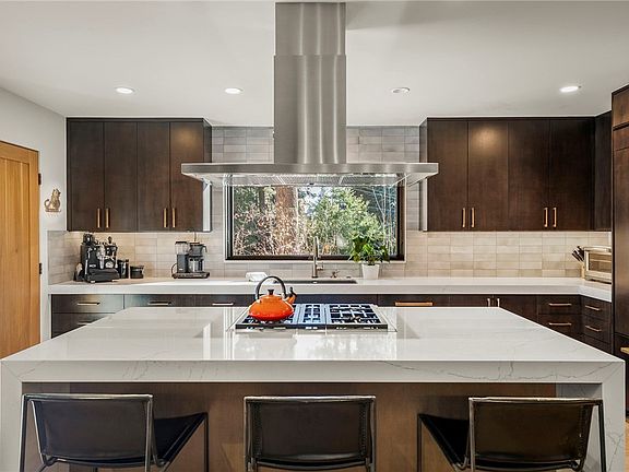 Discover a stunning blend of character & functionality in this reimagined mountain modern home, bordered by the year-round beauty of Second Creek. Thoughtfully remodeled from the studs with no detail overlooked, this home showcases designer finishes with 4 bedrooms, including 2 en-suite bedrooms, plus a versatile bonus room ideal as a fifth bedroom, media room, or office. The park-like grounds invite relaxation and entertainment, featuring a playground, sunken saltwater hot tub, and huge paver patio with built-in fire pit, plus extra-large front deck. Impeccable finishes include wide-plank white oak flooring, enhanced by in-floor radiant heating, indirect LED lighting & smart home technology. Beautiful cedar siding with fire rated insulation, whole-house water purification system & backup generator provide modern convenience. Designer furnishings & meticulous attention to detail make this a move-in-ready sanctuary, offering a rare combination of sophistication and mountain charm.