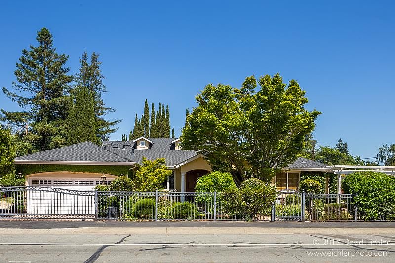 One level home with guest house on generous corner lot in rapidly appreciating neighborhood. Main house 4bd/3.5ba approx 2585sf +/-. Detached 2bd/1ba full kitchen guest house approx 720sf +/-. Note: sf numbers are approximate & not verified by Sereno Group. Notable features: hardwood floors throughout main house & guest house; Anderson windows & solid core doors throughout main residence; expansive great room with open chef's kitchen which opens onto large family room, glass double doors lead out to large entertainment terrace, surrounded by custom landscaping, arbors and flagstone pathways. Master bd with spa-like bathroom ( 2015); attached 2-car garage, electric car ready with 220 charger; individual electronic gates to main house & guest house. Close-by top rated Los Altos schools. Hurry to this one.