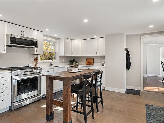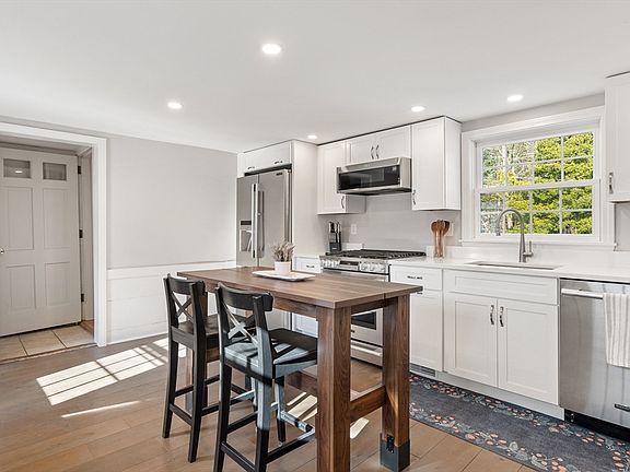 Welcome to Bailey's Corner! This charming antique farmhouse on a spacious lot near Duxbury Village blends historic character with modern updates and the option for one-floor living. The flexible layout features a first-floor primary suite with an updated bath, or potential for an in-law or au pair space. The main level also offers a remodeled kitchen with quartz countertops and new appliances, a dining room, den, office, living room, and a multi-purpose great room. Upstairs, three bedrooms and a full bath connect to a second primary bedroom. Enjoy a fenced yard, patio, and a versatile barn. Recent updates include a new furnace, continuous-feed hot water system, insulation, and extensive interior and exterior improvements. Additional highlights include a new Trex deck, generator hookup, remodeled baths, and a 1-car under garage with extra storage or workshop space. Move-in ready and full of possibilities!