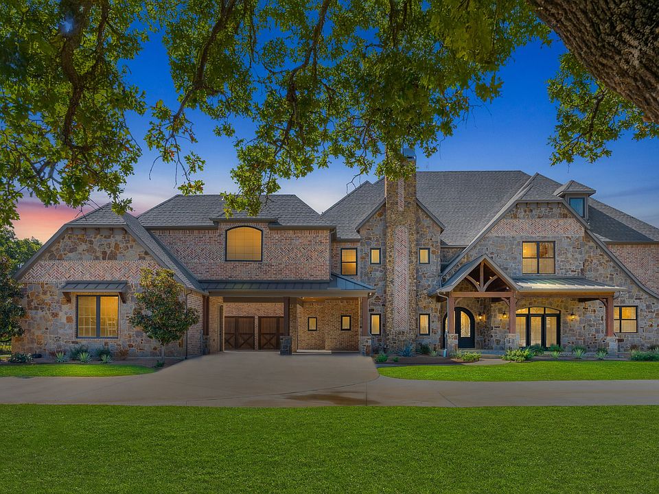 This luxury gated estate in Mansfield, TX offers a rare blend of elegance, comfort, and entertainment. Inside, you'll find an open-concept layout with soaring ceilings and real hand-scraped hardwood floors throughout the first level. The home features 4 stone fireplaces and custom built-ins, creating a warm and inviting atmosphere. The gourmet kitchen is a chef’s dream, complete with copper sinks, a built-in gas range with a pot filler, an oversized island, and a Sub-Zero refrigerator. A walk-in pantry and adjoining butler’s pantry with additional refrigerator space add convenience, while the expansive mudroom with eight cubbies provides organized storage for busy households.
