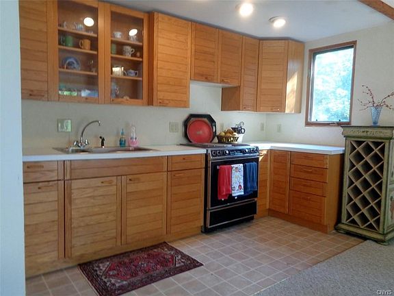 Tucked back down a short driveway you'll find this neat contemporary home nestled on over an acre of private land bordering a tributary creek that runs into Cold Brook, a local trout stream. Home has only had one owner. Other features include a kitchen with Wood-Mode kitchen, living and dining area with plenty of natural sunlight and windows, new front deck overlooking the private yard, new sliding glass doors, spiral staircase leading to a loft style bedroom, finished lower level with master bedroom and walk in closet, a second living area walks out to the front yard, laundry room, lower level has in-floor radiant heat. Enjoy peace and relaxation in this wonderful setting minutes from the village.