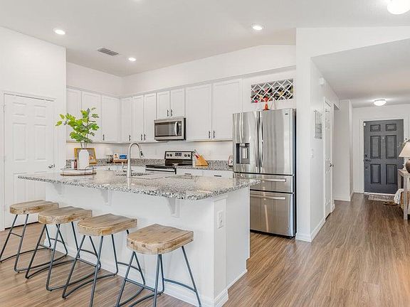 Welcome to the newer construction concrete block home you've been searching for! This 3-bedroom, 2-bathroom gem features an impressive open floor concept with a spacious living room, perfect for entertaining and hosting gatherings. The kitchen boasts beautiful granite countertops, upgraded fixtures, stainless steel appliances, and sparkling white cabinets, making it a chef's delight. The primary bedroom offers a peaceful retreat with an en suite bathroom and plenty of space to relax. Step outside to the partially fenced backyard, where kids can enjoy the playset while you sip your morning coffee on the patio. Conveniently located just minutes from local shopping centers, dining options, and nearby parks, this home has it all!