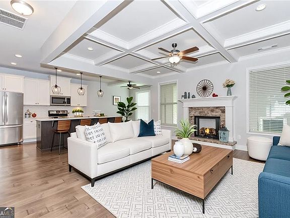 Priced below market value for instant equity! This beautiful 4-bedroom, 3-bath Craftsman home is located in the desirable swim/tennis community of Riverbend at Mulberry Park. The inviting rocking chair front porch welcomes you into an open, spacious interior with hardwood floors throughout the main level. The formal dining area overlooks a versatile flex space ideal for an office or additional living area. The bright kitchen features white cabinets, solid surface countertops, stainless steel appliances, and opens to a fireside family room with a coffered ceiling. Upstairs, the oversized owner's suite boasts a tray ceiling and a luxurious en suite with double vanities, ceramic tile floors, a separate shower, and a soaking tub. Three additional bedrooms and a full bathroom complete the upper level. Enjoy outdoor living on an enclosed back patio with a fireplace and ceiling fan, plus an expanded uncovered patio, perfect for entertaining. The private, fenced backyard adds outdoor privacy. Recent updates include a new HVAC system. The neighborhood offers amenities including a clubhouse, swimming pool, outdoor fireplace, playground, tennis courts, and pickleball. Located near walkable restaurants and within a golf cart-friendly community, this home backs to the Braselton Mulberry Riverwalk trail-perfect for scenic strolls. Conveniently close to Northeast Georgia Medical Center, shopping, and easy access to I-85. Don't miss this opportunity-schedule your showing today!
