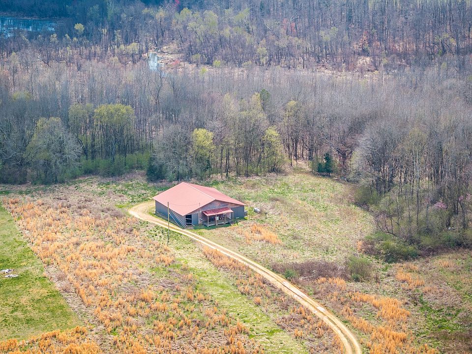 Pole Barn with 800 sq ft Hunter's Cabin tucked inside - 1 Bed/1 Bath Cabin has New HVAC (2022), New plumbing (2022), Septic, Electric, Spectrum Internet/Cable, Living Room & Separate Kitchen (no appliances) - Pole Barn has lights throughout the bays, feeding troughs alongside the length of both bays. The property sits on 20.71 acres of UNRESTRICTED wooded and pasture land with hunting blinds & a beautiful year round Miles Creek that runs through the backside of the property. Only County Taxes! Call today to see this great opportunity to own a homestead or build your dream home.
