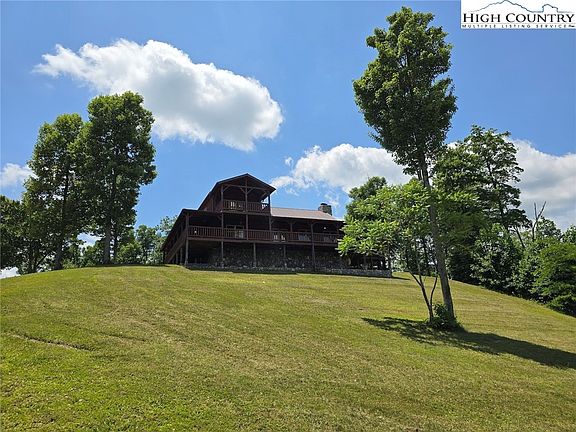 Nestled on 10 picturesque acres, to be surveyed off from a larger parcel, this exquisite log home sits on a flat knoll, offering phenomenal long-range views at an elevation above 3,400 feet and dead end of the road privacy. Over 1/2 mile of a paved road leads you to the top of the mountain with the last stretch a gravel drive to the home. The home features over 2,000 square feet of wrap-around porch space, perfect for taking in the breathtaking scenery. An outdoor wood-burning fireplace on the porch provides a cozy spot for outdoor gatherings.Inside, the warm wood interior and expansive great room with a stone fireplace create a welcoming atmosphere. The main level includes 2 bedrooms and 2 full baths, a fully equipped kitchen, and a convenient main floor laundry.The upper level is dedicated to the primary bedroom, a private retreat with its own covered balcony. The primary bath boasts a walk-in tile shower and a luxurious soaking tub, offering a perfect place to unwind. This log home combines rustic charm with modern amenities, making it a true mountain retreat and comes fully furnished with the exception of the patio furniture. Less than 2 miles to the TN state line, Mt. City TN is less about 10+ minutes away and Watagua Lake is only a 30 minute drive as is downtown West Jefferson and Boone. Come experience the best of the High Country and some of the best views in the High Country. See today