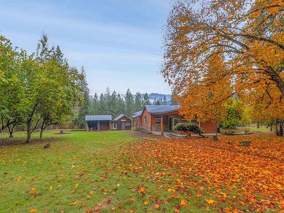 Discover this charming 2 bed, 1.5 bath home on 1.77 acres, just 10 minutes from Orofino on a paved road. This home features a cabin feel with alder cabinets, tongue and groove pine ceilings & rustic log accents throughout. Enjoy cozy evenings by the wood stove, while oversized windows flood the spacious kitchen & family room with natural light. An unfinished walkout basement with half bath, offers the potential for expansion. Outside, you'll find a 25x45 four-bay machine shed, a separate detached garage, woodshed and multiple storage buildings, providing ample space for your projects and outdoor activities. With mature fruit trees, plenty of room for animals or growing your own garden, experience country living at its finest!