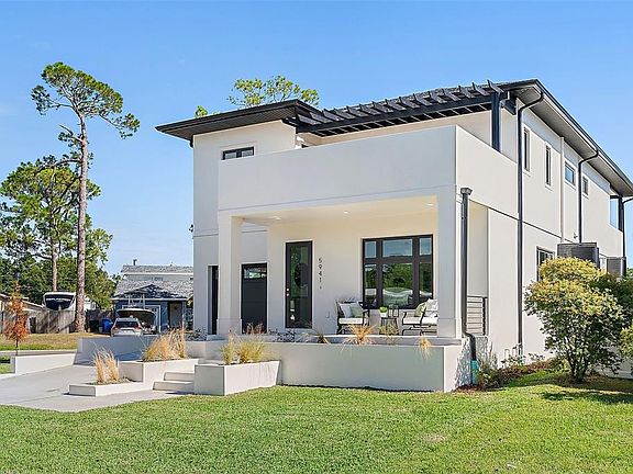 Builder OFFERING $20,000 CREDIT AT CLOSING for rate buy down to an approved buyer! Step into modern coastal luxury in this brand-new, all-concrete block, 4-bedroom/3.5-bath home. Thoughtfully designed and elevated for peace of mind, this stunning residence blends high-end finishes with exceptional craftsmanship throughout. Black-framed hurricane-impact windows and doors, luxury vinyl plank flooring, and recessed LED lighting create a bright and inviting feel in every room. The open-concept living area centers around a showstopping designer kitchen featuring waterfall-edge quartz countertops with breakfast bar stool seating, custom wood cabinetry, stainless steel appliances, pot filler faucet, exposed wood beam accents, and statement light fixtures. A separate prep kitchen provides additional storage and workspace—perfect for entertaining or everyday convenience. The primary suite is a true retreat with a spacious layout, private walk-out covered balcony, large walk-in closet with built-in storage, and a spa-inspired bathroom boasting a freestanding designer soaking tub, beautifully tiled walk-in shower with golden fixtures, and a custom-built dual sink vanity. Three of the four bedrooms include walk-in closets, and each bathroom showcases high-end tile work and designer finishes. Additional highlights include an interior laundry room with a custom tile accent wall, covered front porch, upstairs balcony with pergola roof, irrigated landscaping, one-car garage, and a light/airy ambiance throughout. This exceptional new construction home perfectly combines style, quality, and modern comfort. Outstanding North St. Pete location close to retail corridors, parks, golf courses and a short drive to area beaches and Tampa International Airport. Come see this outstanding home and fall in love today...it is beautiful!