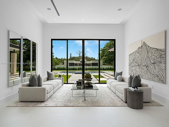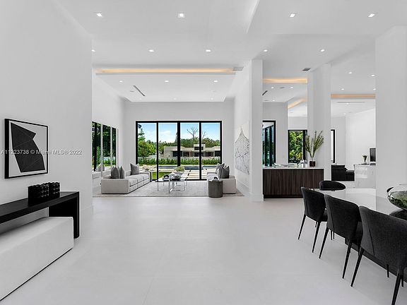 Spectacular 2022 new construction ready for immediate occupancy. This stunning contemporary estate offers the finest finishes and details all while welcoming you with an expansive open floorplan featuring high ceilings, and formal living and dining rooms. Discover a gorgeous Chef’s dream kitchen with top-of-the-line appliances, custom built wet bar and spacious family room overlooking the inviting outdoor oasis. Master suite offers sitting room/home office, walk-in closets, and luxurious spa like bath with soaking tub, and large shower. Indulge in a lavish resort style pool and spa, featuring summer kitchen, covered terrace and ample green grounds. Additional Features: impact windows/doors, cabana bath, laundry room, and 2 car garage w/space for lifts.