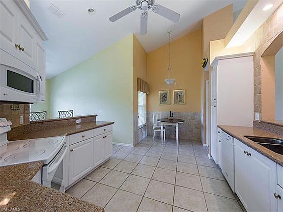 C.13761 - Fantastic location and deep golf course and lake views from this 2nd floor property. Freshly painted in a neutral tone throughout. All tile in living areas and bedrooms as well as lanai and entry stairway. Electric storm shutters on lanai. Master bath has elevated marble counter tops and seamless glass shower door with updated tile finishes including shower seat. Guest bath has marble counter tops and both baths have comfort height toilets. Kitchen counters are silestone. Den has built-in desk and work station with plenty of room for sofa bed. Short walk to community clubhouse and pool.
