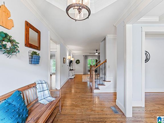 Don’t miss this stunning 4-bed, 4.5-bath custom home in one of Trussville’s most desirable neighborhoods, zoned for award-winning schools. Professionally landscaped with timeless charm, the open-concept main level features hardwood floors, trey ceilings, a formal dining/living room, and a spacious family room with rock fireplace. The gourmet kitchen boasts stainless steel appliances, granite countertops, and an island. A large laundry room offers extra storage and a utility sink. The main-level master suite includes a spa-like bath with jetted tub, tiled shower, and walk-in closet. Upstairs: 3 bedrooms, Jack & Jill bath, and full bath. The basement features a large family room with wet bar, full bath, office with private entrance, and a safe room/storm shelter with TV, cable, and surveillance hookups—ideal for weather alerts and keeping an eye on what is happening outside the safe room. This home blends luxury and comfort in a prime location. Schedule your private showing today!