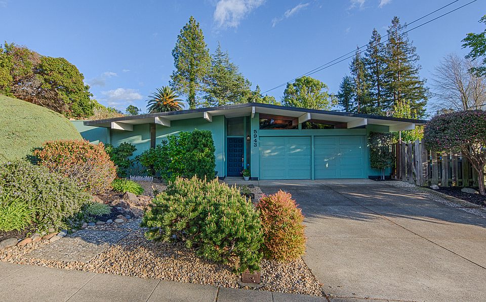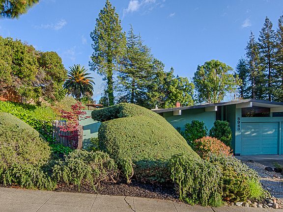 Expanded Eichler with 16x30 rumpus room. Updated kitchen and baths, dual pane windows, laminate bamboo floors, and two gas fireplaces. Rear yard with covered deck, hot tub, and tiered yard with view. Kitchen has 5 burner gas Decor range. All appliances stay. Foam insulated roof. Don't miss!