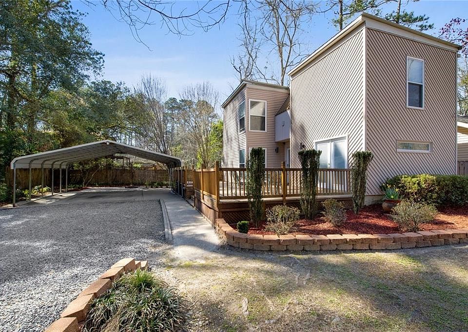 This precious home is an outdoor entertainers dream! Huge patio with new decking and a carport that could be used for parties and crawfish boils! Living room has a unique marble wood-burning fireplace and kitchen has granite counters with plenty of counter seating. Walls, trim, and ceilings all recently painted. New roof in 2020, and new AC and deck in 2021. Refrigerator, washer, and dryer included as well!
