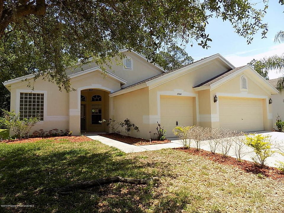 Welcome to beautiful Lake Bernadette! Excellent opportunity to own a large 4 bedroom, 3 bathroom, 3 car garage home. Open and spacious featuring a formal living and dining room, large family room, bright kitchen and a split bedroom layout. The master suite has a walk-in closet and huge attached bathroom with a garden tub and double sinks. Sliders from the nook or family room lead to the very private backyard and large covered lanai. Don't miss out on this lovely cul-de-sac home! Call today!