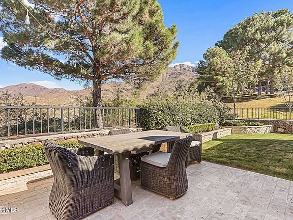 Beautiful home with fantastic views with attention to detail throughout & located on a quiet cul-de-sac. Area includes clubhouse with pool & tennis/pickle ball courts and within 5 minutes to Coronado Country Club. Living room with vaulted ceilings & fireplace plus balcony views. Dining area with wet bar and wine fridge. Large modern kitchen with island, stainless appliance package, quartz countertops, 2 dishwashers, barstool seating & upgraded lighting fixtures. Breakfast nook with views of the Franklin Mountains & wall of built-in cabinets. Great sunrises & sunsets. Wrap around backyard with artificial turf. Also on this level is a den, guest bedroom & office/study. Upper level primary suite with views & built-ins plus fabulous tiled shower and double vanities. Lower level has guest bedroom plus sitting area or exercise room. Also large utility room with dog shower. (Amenities: Corner lot, hardwood floors, shutters, hiking trails, gated area plus location, location, location)