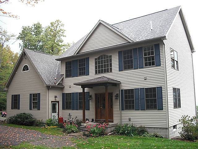Beautiful & private setting. Amazing sunrises. Incredible views of pond & valley to the northeast, seasonal views of Hemlock Lake. 28.5 acres, including woods & stream. Nature lovers, hunters this property is for you. 4 BR, 3 BA, 2595 sqft Colonial/Contemporary home built in 2004. Open floor plan for living & entertaining. Energy efficient. Master bedroom with viewing deck & master bath. Walkout bsmt can easily be finished for more sqft. Panel connection for generator. Great house & property at end of long driveway at end of dead-end country road - very very private. Great place to "be home".
