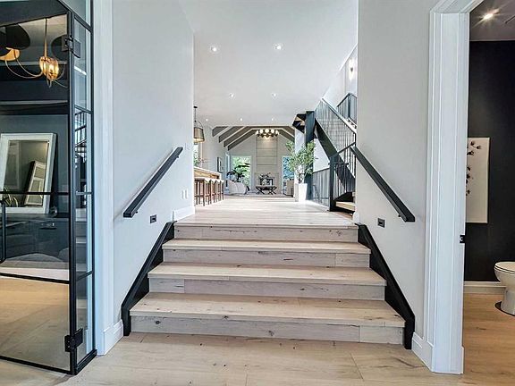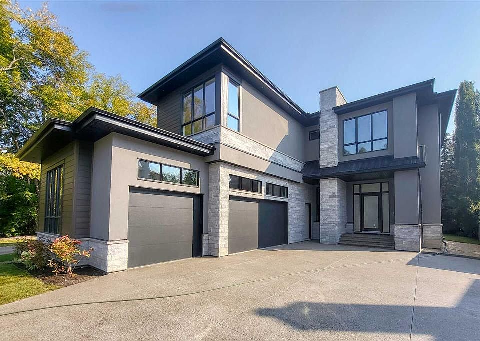 Understated luxury & contemporary design describe this gorgeous property situated in the heart of Bowness - mere steps from the Bow River. Offering 3,993 SF living space above grade with 4 bedrooms, 3.5 bathrooms and not a detail overlooked with the high end custom finishing's. Beautifully crafted by Elegant Homes, you will immediately be impressed by the chic curb appeal with modern design elements featuring natural stone, acrylic stucco, Hardie board siding and metal roof. You are welcomed into a large sunken foyer and home office with wall to wall built-ins and a gorgeous 10 mm designer glass, black metal framed doors. The staircase leads to an expansive main floor with an open concept design and Brunswick Oak Sussex pre-finished engineered hardwood floors throughout. The vaulted living room features exposed beams with the soaring ceiling and stunning full height custom concrete fireplace and a bright dining area with elegant wainscoting and backyard views. The heart of a home is the Chef’s kitchen, custom cabinetry built by DreamSpace – a combination of White oak and Revere Pewter cabinets, chic hardware, under cabinet lighting, oversized waterfall quartz island, large Blanco Precis silgranit kitchen sink, high-end Jennair appliances featuring a 48" gas range, walk-in pantry and sliding patio doors for easy access to the expansive vinyl deck. Don't overlook the wet bar perfectly placed between the kitchen and dining room. A powder room and rear mud room with custom lockers complete this level. Ascend the spectacular staircase featuring open hardwood risers and black spindles leading to the upper level with a unique aluminum slat divider in the bonus/family room boasting built-in entertainment shelving and a second wet bar. The primary bedroom is sure to impress with the large windows, custom walk-in closet and spa-like ensuite with porcelain tile, a rain shower with quartz floating bench, 10 mm smoked glass, freestanding tub, tile warmer floors, and custom cabinetry built by DreamSpace in White oak with Calcutta quartz countertops. Two additional, spacious bedrooms share a 5-piece bathroom and the 4th bedroom a 3 piece ensuite. A generously scaled laundry room with sink, loads of cabinet storage and TWO washer and dryers finishes off the upper floor. The basement awaits your personal touch. Highlighted finishing's include: 8' high passage doors, champagne bronze and black faucets throughout, and designer lighting. Live at ease with a 2 year builder warranty and 5 year National Home Warranty. A rare OVERSIZED TRIPLE garage, fully landscaped including irrigation. a large and private treed backyard. Perfectly located with easy access to the Bow River pathways, close to schools, shopping, minutes from Downtown and a quick exit to the mountains – this home is a MUST SEE!