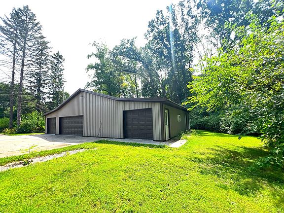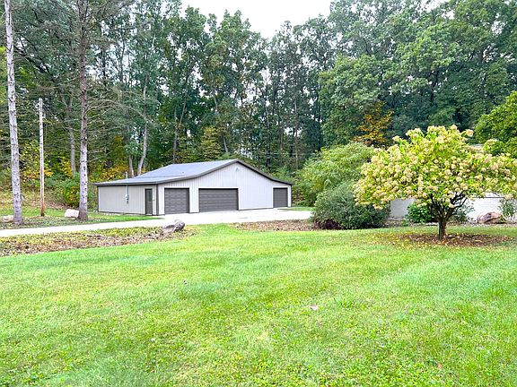 Completely Updated Ranch Walkout on 5 Acres! Beautiful wooded property with a 32x56 pole barn (w/heat and electric), a 20x40 inground pool and loads of space for all your hobbies. Welcome guests at the front covered entrance. From the entrance you can access the dining area/kitchen, living room or hallway to the bedrooms, the perfect functional floor plan. Main level includes the kitchen, dining area, formal dining room, large living room overlooking the pool, hot tub room with access to a large deck, spacious laundry room with extra storage, 3 bedrooms, large bathroom with a tub/shower and extra storage plus a half bath off the primary bedroom, all bedrooms have spacious closets. The walkout level features a huge family room with a fireplace and serving counter. Great place to relax or entertain. Huge bedroom, extra storage area and another full bathroom with tiled shower. Walkout to a patio and access to the inground pool. Attached 2 car garage & paved parking. A Must See!