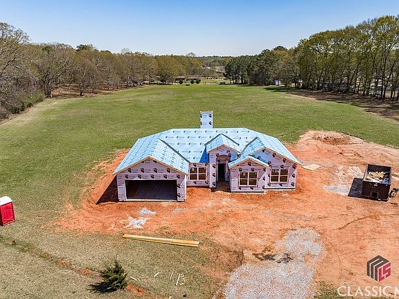NEW BRITTANY Plan in Colbert by Old Mill Properties! Estimated Completion May/June 2025! Mortgage Rates as Low as 5.5% with preferred lender! This BRITTANY PLAN is located on a Beautiful Open 2 Acre Lot, No Subdivision / No HOA and boasts 4 Beds, 2 Baths all on one level! Finishes include Hardiplank Siding, Popular Shaker Style Cabinetry, Granite Counters, Stainless Appliances, LVP & Carpet Flooring & Silver/Chrome Lighting, Plumbing & Hardware finishes. Layout features a spacious Great Room with central fireplace that is open to Kitchen & Dining area all overlooking the pastoral backyard setting. Kitchen features shaker style cabinetry with crown molding, granite countertops and stainless appliances. Primary bedroom suite features a tray ceiling, sitting area, large walk-in closet and bathroom with double vanity, garden tub and separate shower. 1 guest bedroom is located off front entry foyer making it a great option as a flex room / office if 4th bedroom not needed. The other 2 bedrooms located down main hallway. Note - Aerial photography is of the actual house and the finished photos are stock pictures of a Brittany plan so some finishes may differ. Make your appointment to view the home now while there is still time to choose finishes! *5.5% Rate available through Robins Financial on their 5/5 ARM product. Inquire for details.