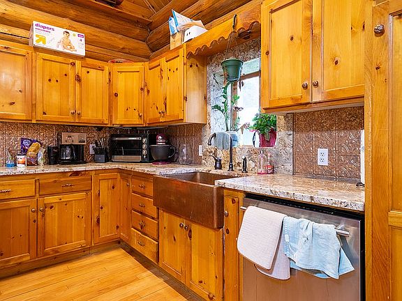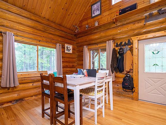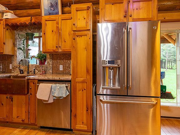 Beautiful Tranquil End of the Road Privacy. Custom hand crafted log home nestled in the trees. Craftsmanship tongue and groove vaulted ceilings complimented by beautiful hardwood floors. Custom kitchen with breakfast bar, stainless steel appliances, copper farm sink and granite counters. Main floor master suite with a claw-foot tub in the full bath with dual sinks. Lower level boasts a large family room with pellet stove, 2 bedrooms, full bath and laundry room. Upstairs loft is perfect for an office or den. Sit and relax as you enjoy your tranquil 5 acres on either one of the covered decks. Large garden. Large approx. 20x40 detached garage, Newly remodeled Carpeted 10x 30 Bldg that can be a Studio/Playroom/Office/Arts & Crafts/Storage. 2-4 person steam sauna can be found in the garage.