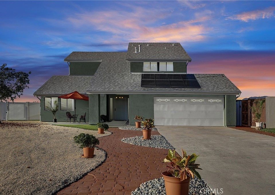 Additional features include central air and heat, washer/dryer hookups, newer appliances, a two-car attached garage with a new automatic opener, solar panels, and automatic gates that open to the backyard — where you’ll find incredible panoramic views.