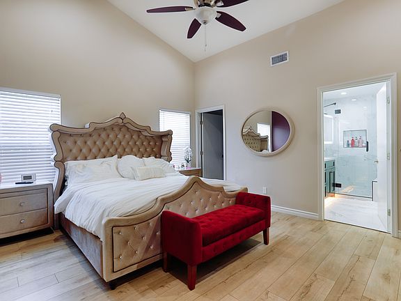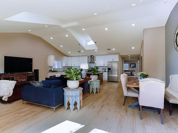This charming home has great curb appeal and is move in ready. This home has it all with a formal living room, dining area, open kitchen, family room, master suite, walk in pantry and so much more! Open floor plan with large kitchen complete with shaker cabinets, quartz counters, stainless steel appliances and center island, separated dining area and family room.The interior attention to detail is evident with an abundance of custom finishes including a sauna and an amazing custom made fish tank. Note the vaulted ceilings and skylights bringing natural light and brightness to the home. Enjoy indoor-outdoor living with doors that open to a private backyard. Welcome Home.....