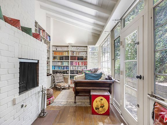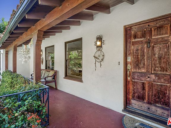 Available furnished or potentially unfurnished, Villa Gazelle, a Spanish colonial on a pretty street in Beachwood Canyon, tucked away on a quiet cul-de-sac off Canyon Drive, surrounded by lush grounds, secluded and private. 4+4.5, a light & airy living room with rows of windows looking over the canyon and front dozing porch, remodeled open kitchen w/ an eat-in breakfast nook overlooking greenery. Glass doors fold open to the grassy back yard for indoor/outdoor California dining & lifestyle. The main floor has 3 bedrooms w/ the primary having its own balcony plus two guest en-suites. A wall of glass and bookcases with a fireplace are hallmarks of the cozy library. Downstairs is a versatile artist studio that can be a bedroom w/ kitchenette, full bath and separate entrance. One car parking. This enchanting Spanish is a true vacation.