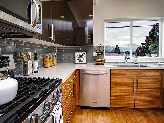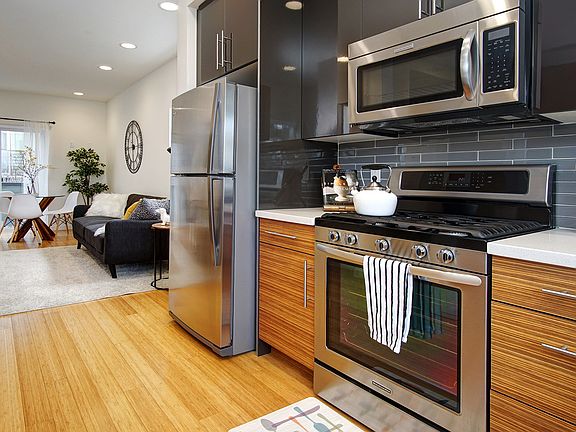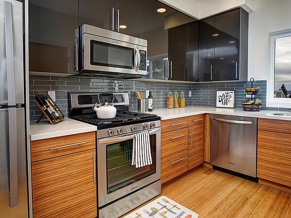 Come see this modern townhome w/expansive Sound & Mountain views locate in the hip Morgan Junction just steps to restaurants, grocery & rapid ride bus. Home sits off main street for quite living w/alley access to the 1 car garage. Well maintained 3 BR, 2.5 Bath with new interior paint, living room w/sliders to deck & gourmet kitchen with gas stove. The 200+ SF roof top deck features sweeping Westerly views & is plumbed with gas/water perfect for gardening, summer BBQ's & entertaining. No HOA.